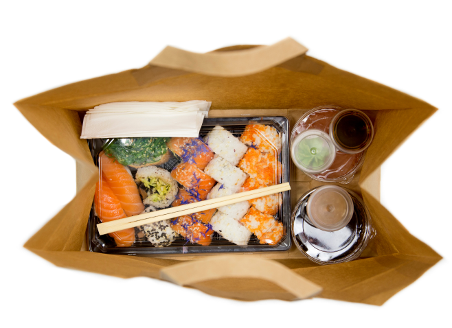 В зависимости от количества суши и роллов, бесплатно прилагается порция имбиря, а также комплект палочек на выбор*, соевый соус* и васаби по количеству приборов.